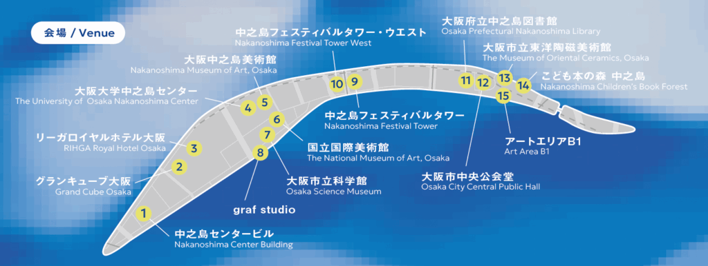 「ARでめぐる『中之島15の場所での物語』」では、大阪・中之島に点在する15施設に設置のミーティングポイントで、各作品をご覧いただけます。